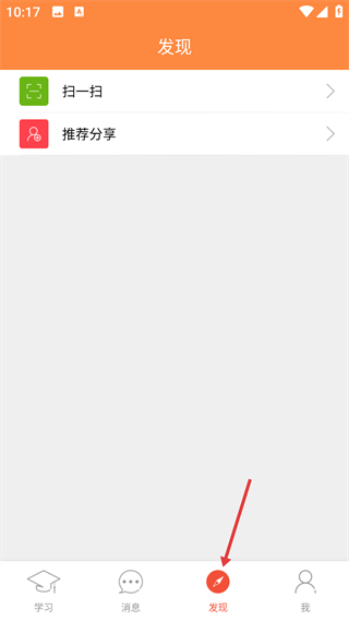 4、發現頁支持掃碼功能,可完成簽到等操作,也能通過推薦分享板塊,了解學習資源與機構相關活動。