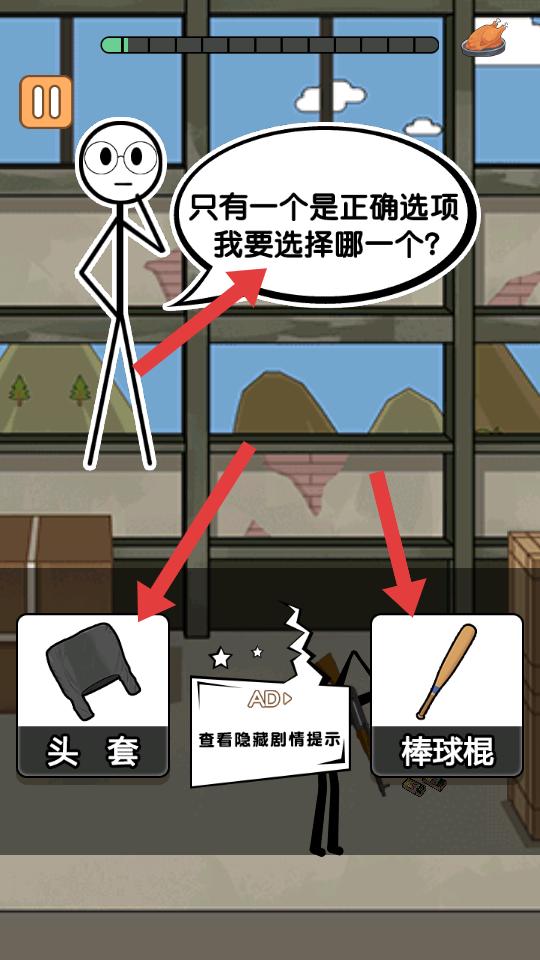 3、游戲中會遇到選擇類場景,只有一個正確選項,需在頭套,棒球棍等選項中選擇,選對才能推進劇情。