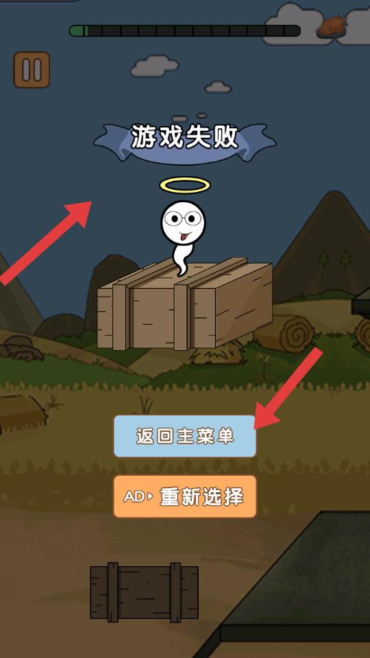 4、若選擇錯誤,會顯示游戲失敗,此時可點擊返回主菜單回到主界面,或看廣告重新選擇,再次嘗試。