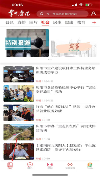 1、首頁社會欄目,發布慶陽市水土保持培訓、食品檢驗檢測開放日等新聞,傳遞區域發展與民生動態。