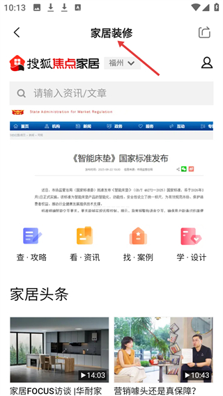 4、家居裝修頁有查攻略、看資訊功能,展示智能床墊國標等資訊,還有家居訪談、案例,助力裝修規劃。