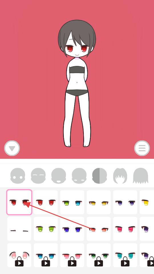 1、打開游戲進入角色裝扮界面,先選擇眼睛樣式,為角色搭配出合適的眼睛,接著挑選發型、服飾等,逐步打造出心儀的角色形象。