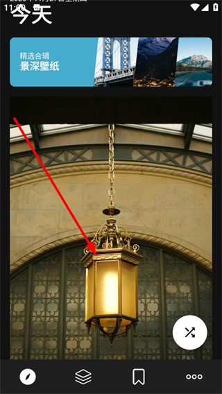 1、進入應用界面,可看到精選合輯等壁紙分類,點擊目標壁紙進入預覽頁面,底部有編輯、收藏等功能按鈕,可對壁紙進行初步操作。