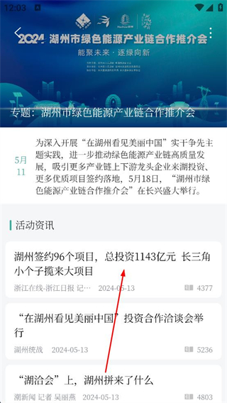 2、在專題詳情頁面閱讀專題的介紹內容,了解活動的背景目的等信息,瀏覽活動資訊列表,選擇具體的資訊條目查看詳細內容。