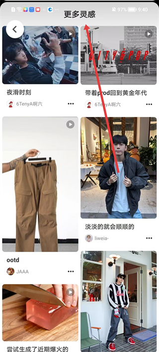 3、點擊更多靈感板塊,可瀏覽各類風格的穿搭靈感內容,如夜滑時刻、帶著prod回到黃金年代等主題的穿搭分享,從中獲取更多穿搭思路。