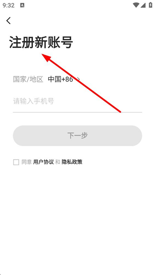 4、若沒有賬號,可點擊注冊新賬號,選擇國家、地區輸入手機號,勾選同意用戶協議和隱私政策后點擊下一步,按提示完成新賬號注冊流程。