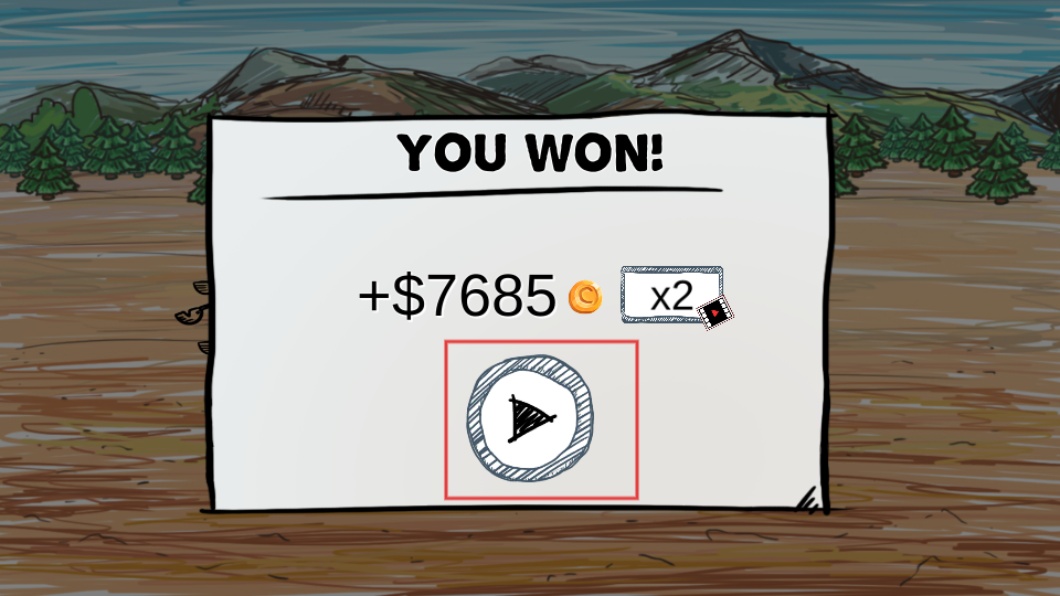 3、成功擊敗敵方軍隊后,獲得勝利,會得到金幣獎勵,點擊繼續按鈕,可進入下一場戰斗,繼續指揮火柴人作戰。