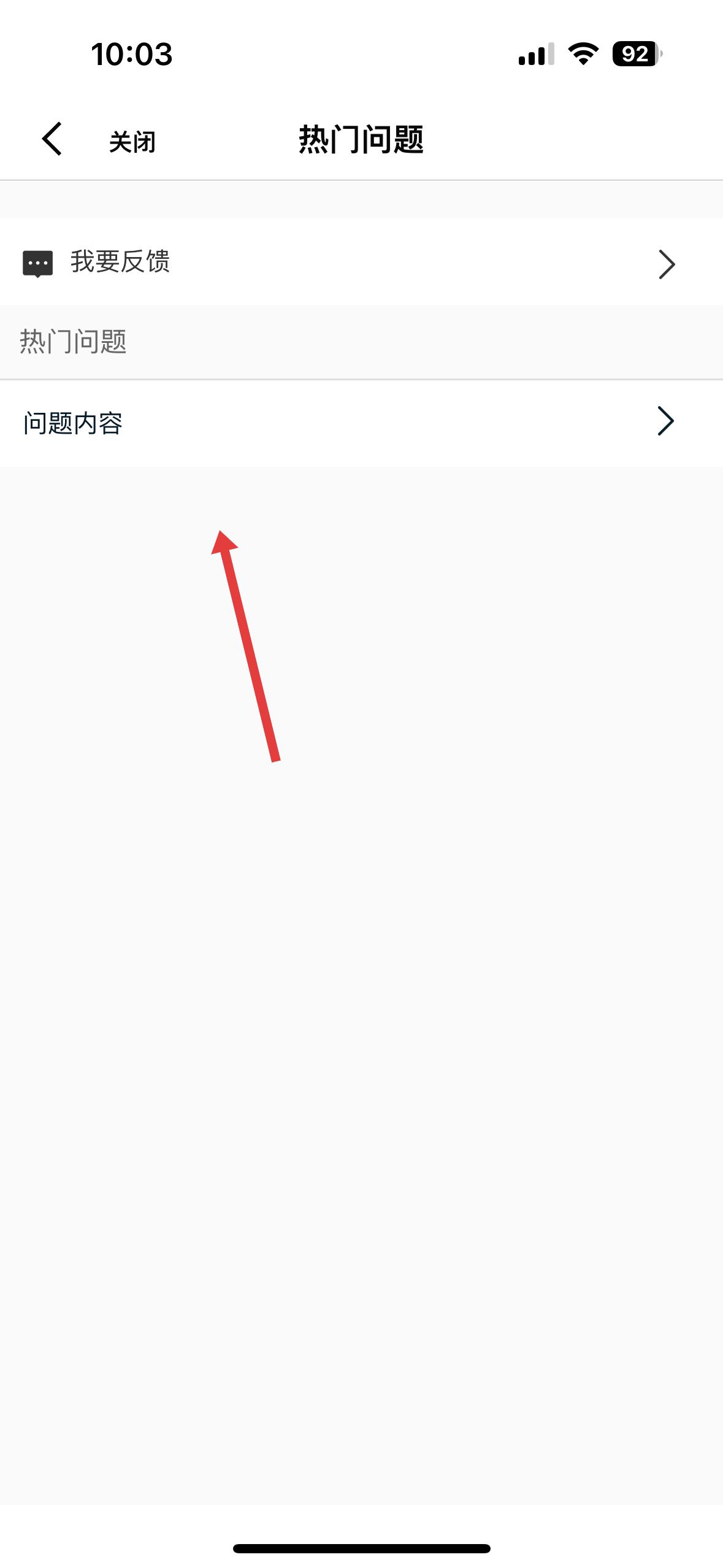3、熱門問題頁面,有我要反饋和問題內容等選項,用戶可在此反饋問題或查看熱門問題相關內容,頁面左上角還有關閉按鈕可退出該頁面。