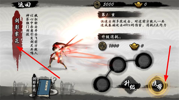 1、攜帶劍影棗花技能,快速出劍對前方敵人造成多段傷害,消耗內力釋放,提升戰斗輸出,助力江湖征戰。