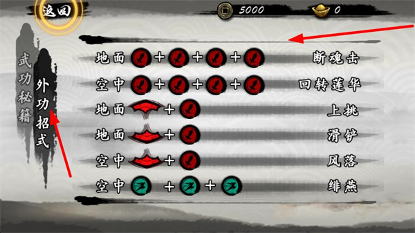 2、查看外功招式秘籍,學習斷魂擊、回轉蓮華等招式,掌握不同場景下的攻擊技巧,增強戰斗策略性。