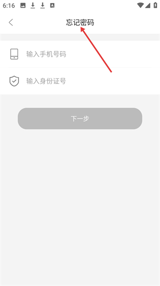 3、忘記密碼界面需輸入手機號碼和身份證號,點擊下一步進行密碼找回操作。