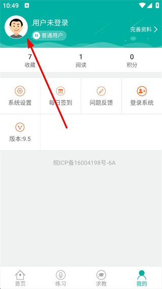 2、進入個人中心頁面,顯示用戶未登錄,可查看收藏閱讀等數據,還有系統設置每日簽到等功能選項,點擊登錄系統可觸發登錄方式選擇界面。