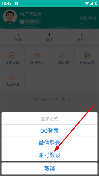3、點擊登錄系統后彈出登錄方式選擇框,提供QQ登錄微信登錄賬號登錄三種選項,可任選一種方式來進行賬號的登錄操作。