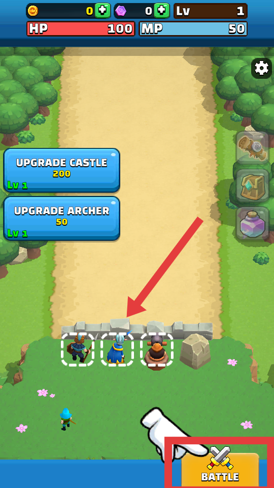 2、戰斗準備界面玩家點擊相應按鈕即可對城堡和防御單位進行升級,升級弓箭手能增強他們的攻擊力、攻擊速度等,以此提升整體防御能力。