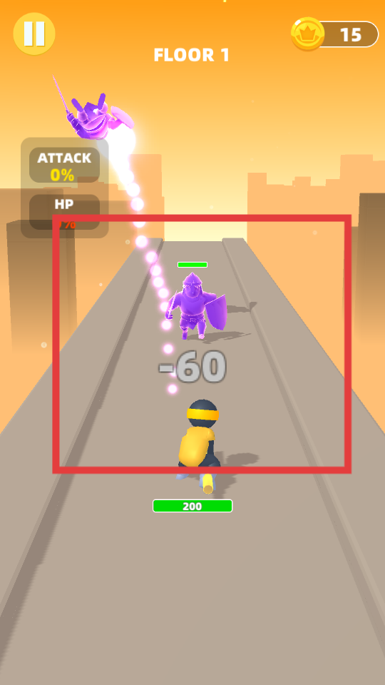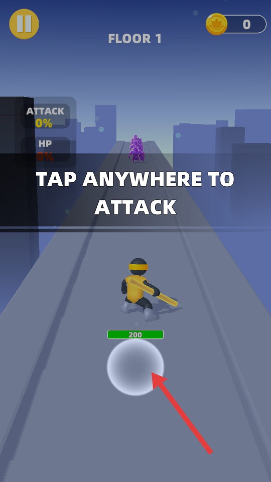 2、然后正式進入FLOOR1,點擊屏幕控制角色攻擊,注意攻擊節奏,怪物靠近就點擊,利用武器攻擊范圍別等怪物近身,保持安全距離輸出,這樣能減少自身掉血。