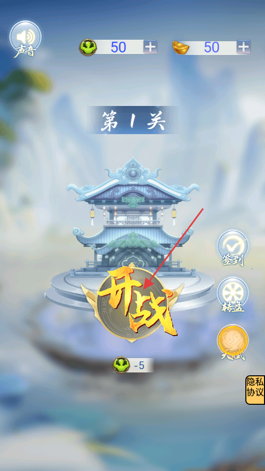 2、完成能力升級后回到關卡選擇界面,能看到第幾關的標識,點擊開戰即可進入第一關的戰斗場景,此時要注意消耗的資源,確認后開啟仙界之旅挑戰。