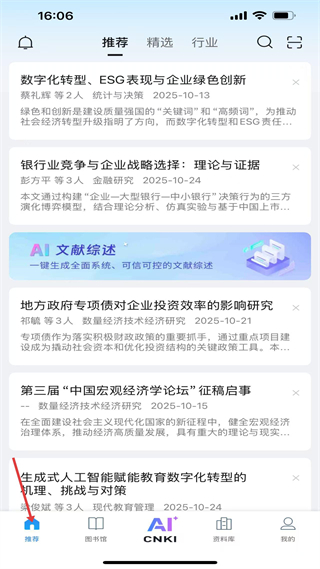 1、推薦板塊展示數字化轉型、銀行業競爭、地方政.府專項債等學術文獻,提供AI文獻綜述功能,助力學術研究。