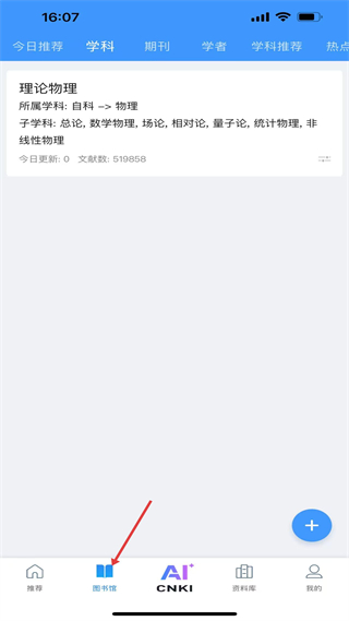 2、圖書館板塊設學科、期刊等分類,展示理論物理學科文獻,方便用戶按學科查找學術資源。