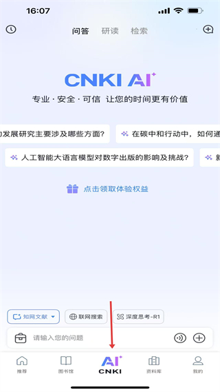 3、CNKI AI板塊提供問答等功能,可咨詢人工智能大語言模型對數字出版的影響等問題,借助AI輔助學術研究。