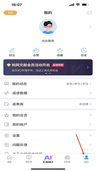 4、我的板塊可登錄賬號,管理標注、點贊、收藏等,查看閱讀數據、會員信息,進行問題反饋與設置管理。