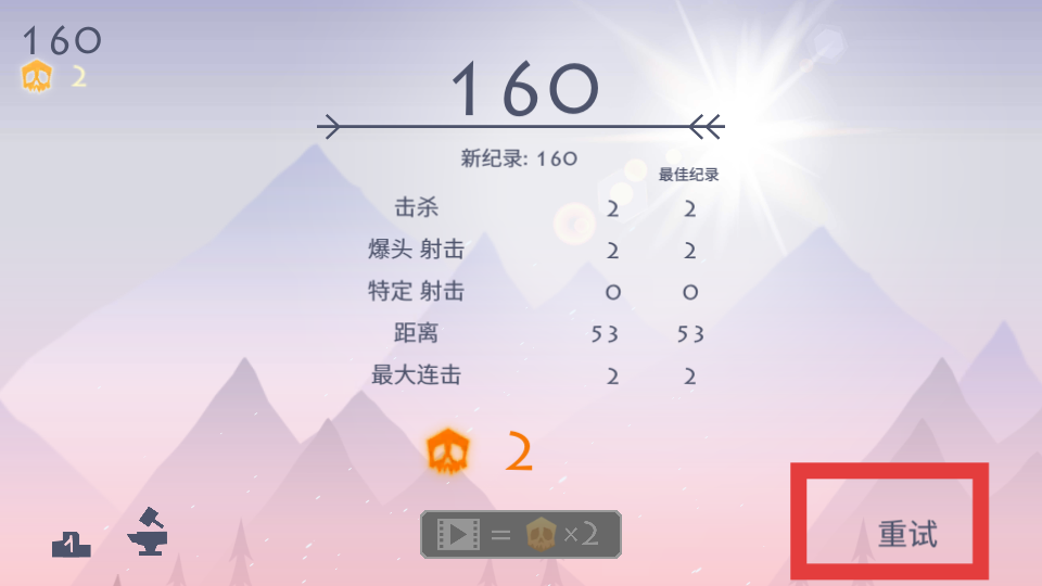 4、如果在關卡中游戲結束可以點擊重試按鈕重新挑戰關卡玩,家可以總結上一次游戲的經驗,改進射擊技巧,調整操作策略。