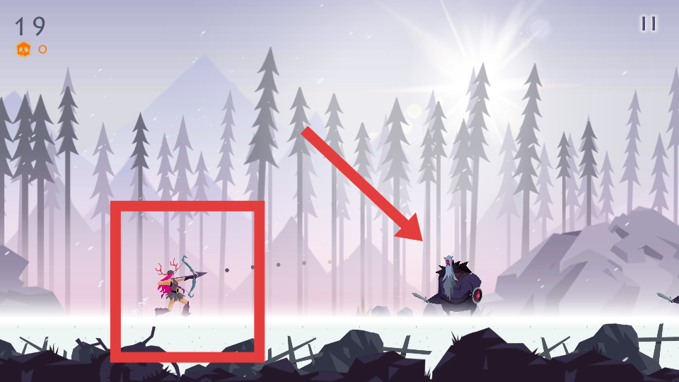 2、進入游戲場景后玩家操控維京射手通過滑動屏幕或點擊等操作方式,控制射手瞄準并射擊迎面而來的敵人,精準射擊敵人避免被敵人近身攻擊。