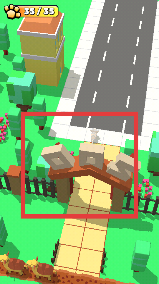 3、玩家持續控制動物角色在道路上跳躍前進,躲避場景中的障礙,最終抵達場景盡頭的類似大門的出口區域。