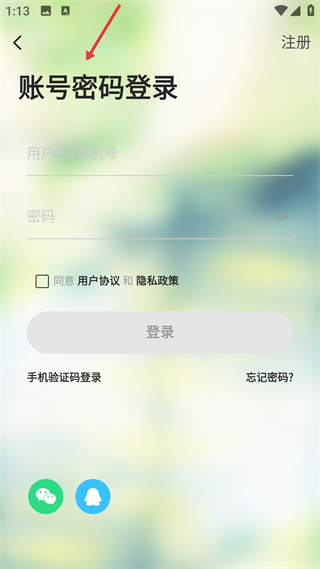 1、進入游戲先到賬號密碼登錄界面,需填寫用戶名手機號與密碼,勾選用戶協議和隱私政策后點擊登錄,也可選擇手機驗證碼或第三方方式登錄。