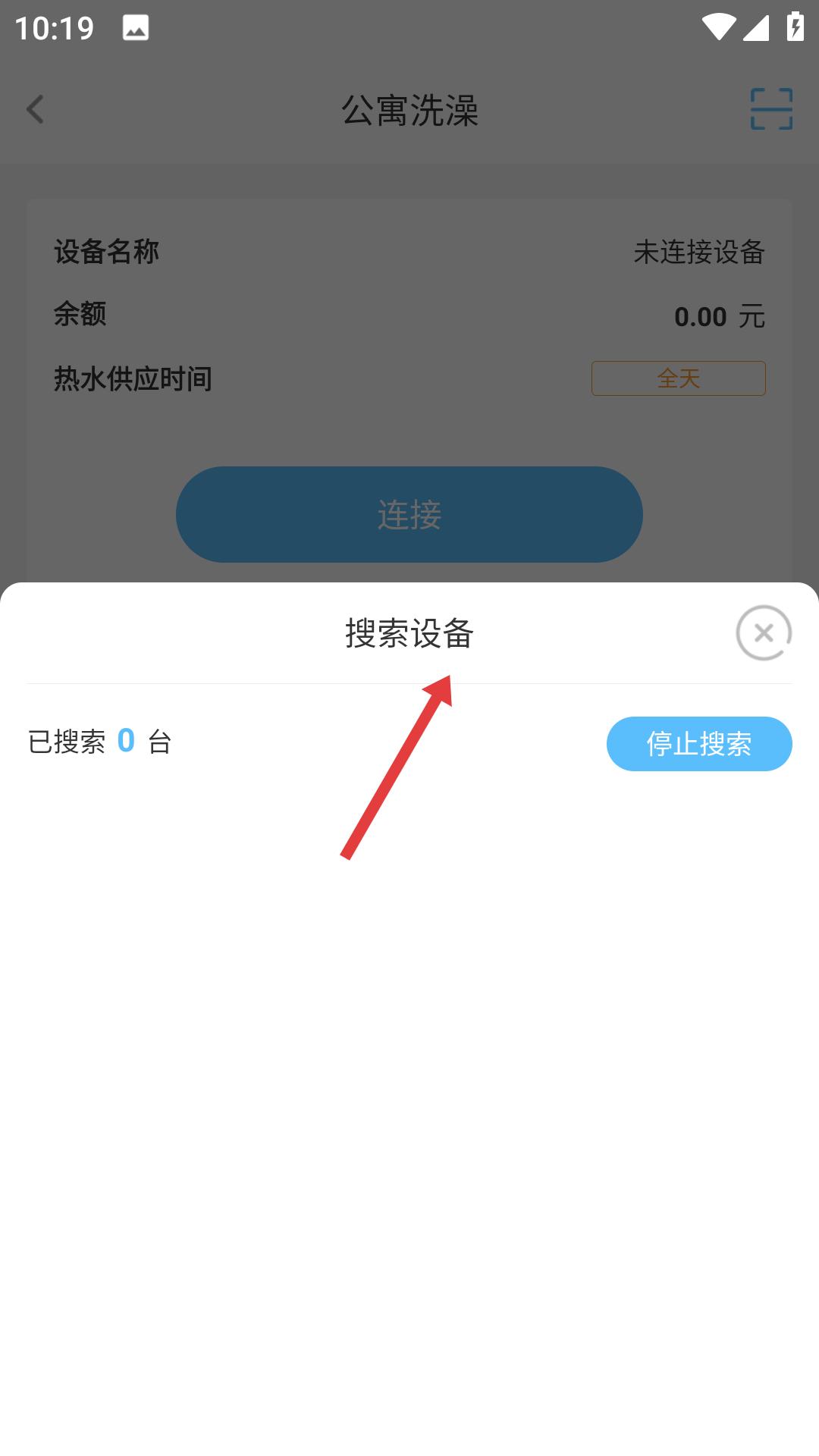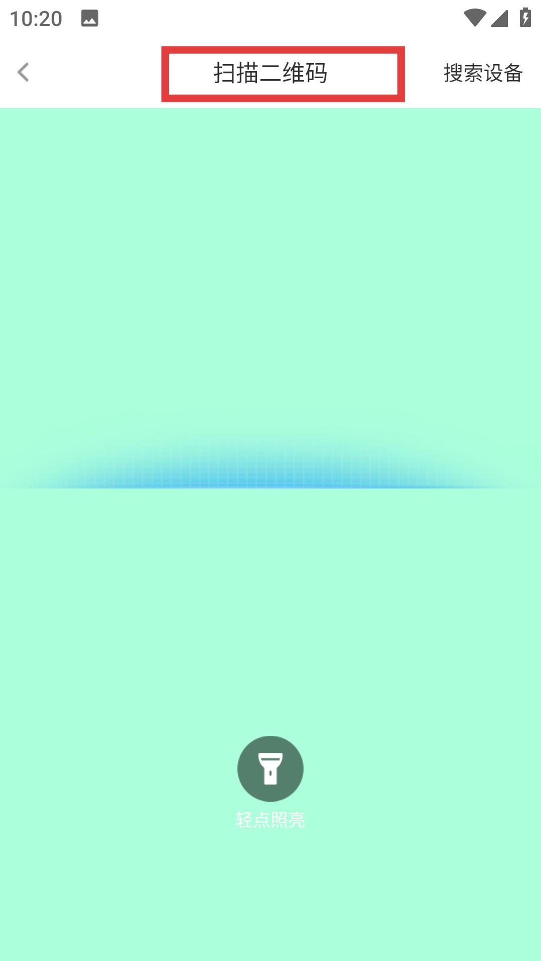 4、若搜索設備不便,可切換到掃描二維碼界面,通過掃描設備上的二維碼來連接公寓洗澡設備。