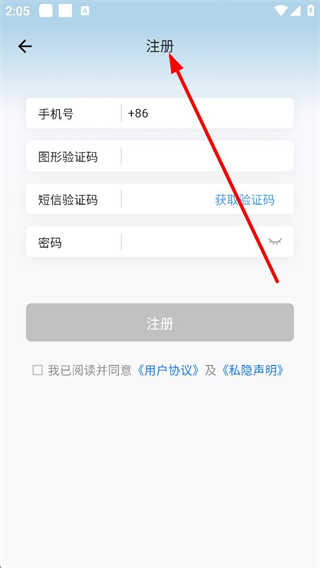 4、若沒有賬號,可點擊注冊,輸入手機號、圖形驗證碼、短信驗證碼、密碼,勾選同意相關協議后即可完成注冊,注冊后可登錄使用APP功能。