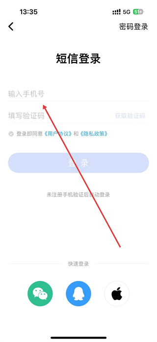 1、打開該資訊類APP,進入短信登錄頁面,在輸入框填寫手機號,點擊獲取驗證碼,填寫后勾選相關協議,完成登錄。