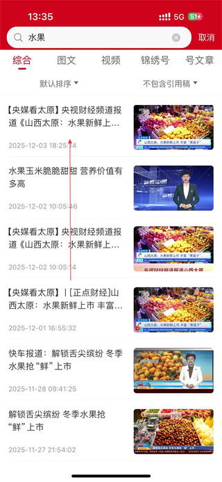 2、登錄后在搜索框輸入水果,點擊搜索按鈕,查看綜合分類下展示的相關資訊內容,選擇目標資訊進入詳情頁。