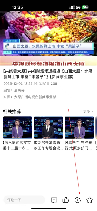 1、啟動錦繡太原城APP,點擊底部新聞,在頂部切換太原標簽,瀏覽本地資訊。