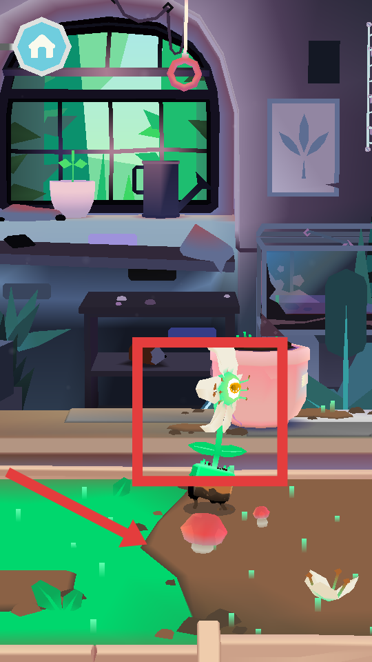 4、進入游戲場景可以獲取植物幼苗,將其種植在花盆或合適的土地區域,通過使用架子上的培育道具像肥料、生長劑等,對植物進行培育,促進植物生長。