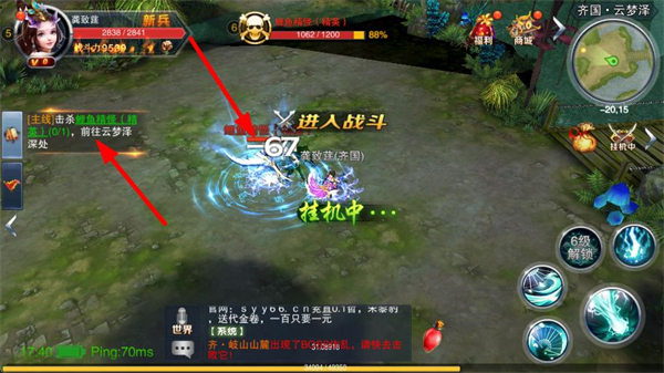 4、跟隨主線任務擊殺章魚姥姥,前往云夢澤深處進入戰斗,掛機戰斗可自動攻擊敵人,完成任務。
