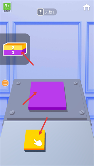 2、根據提示將不同顏色的方塊按順序放置,完成方塊堆疊任務,這是游戲初期的基礎操作需仔細操作。