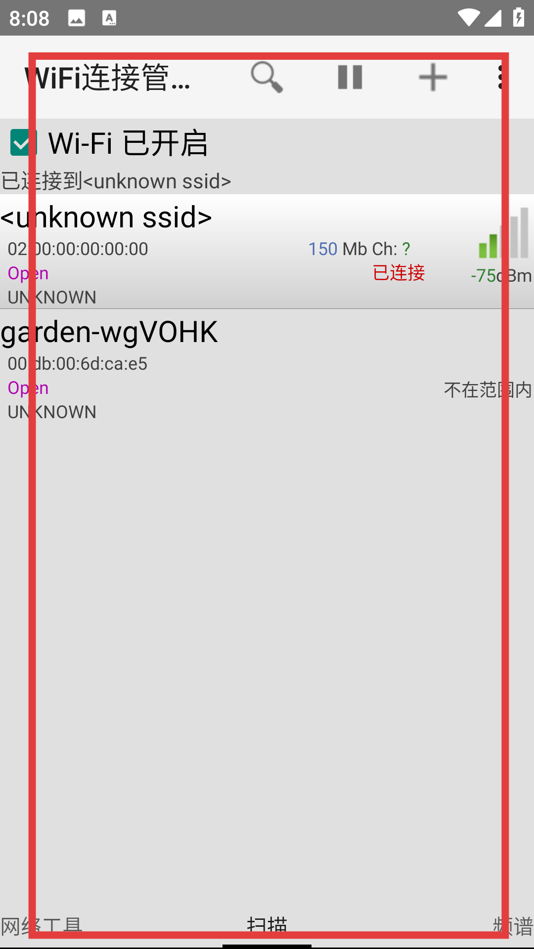 3、完成權限授予后即可進入WiFi連接管理器的主界面,在這里能看到WiFi開啟狀態,以及已連接和可連接的WiFi列表,實現對WiFi網絡的有效管控。