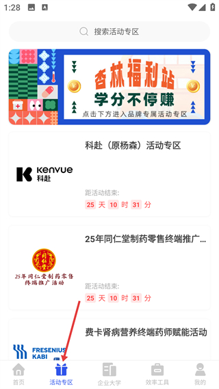 2、活動專區匯聚各品牌專屬活動,標注活動剩余時長,支持參與推廣、積累學分等,助力醫藥從業者獲取行業相關資源。