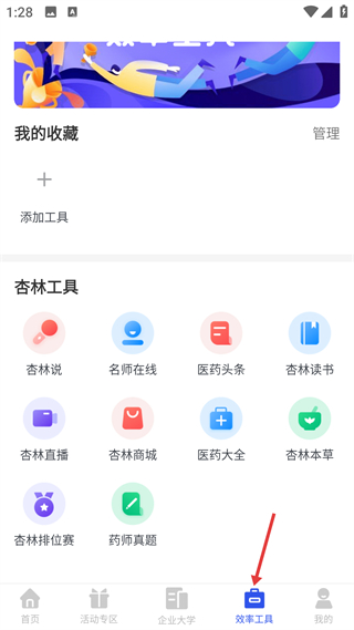 4、效率工具整合杏林說等實用工具,覆蓋資訊、學習等場景,支持收藏工具,為醫藥從業者提供便捷的工作輔助功能。
