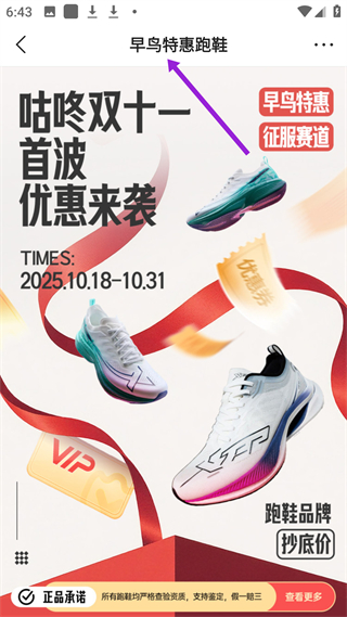 3、早鳥特惠跑鞋活動,咕咚雙11首波優惠來襲,時間10.18、10.31,跑鞋早鳥特惠,品牌抄底價,且正品保障假一賠三。