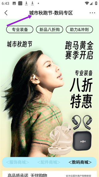 4、城市秋跑節、數碼專區,跑馬黃金賽季開啟,專業裝備8折特惠,有專業裝備、新品八折購等分類,助力運動沖刺。