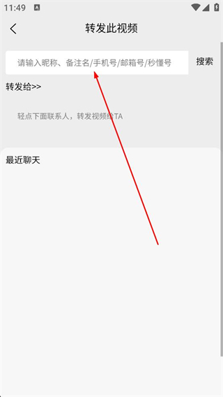 4、點擊分享按鈕進入轉發頁面,輸入聯系人信息,選擇要轉發的對象,完成該視頻的轉發。