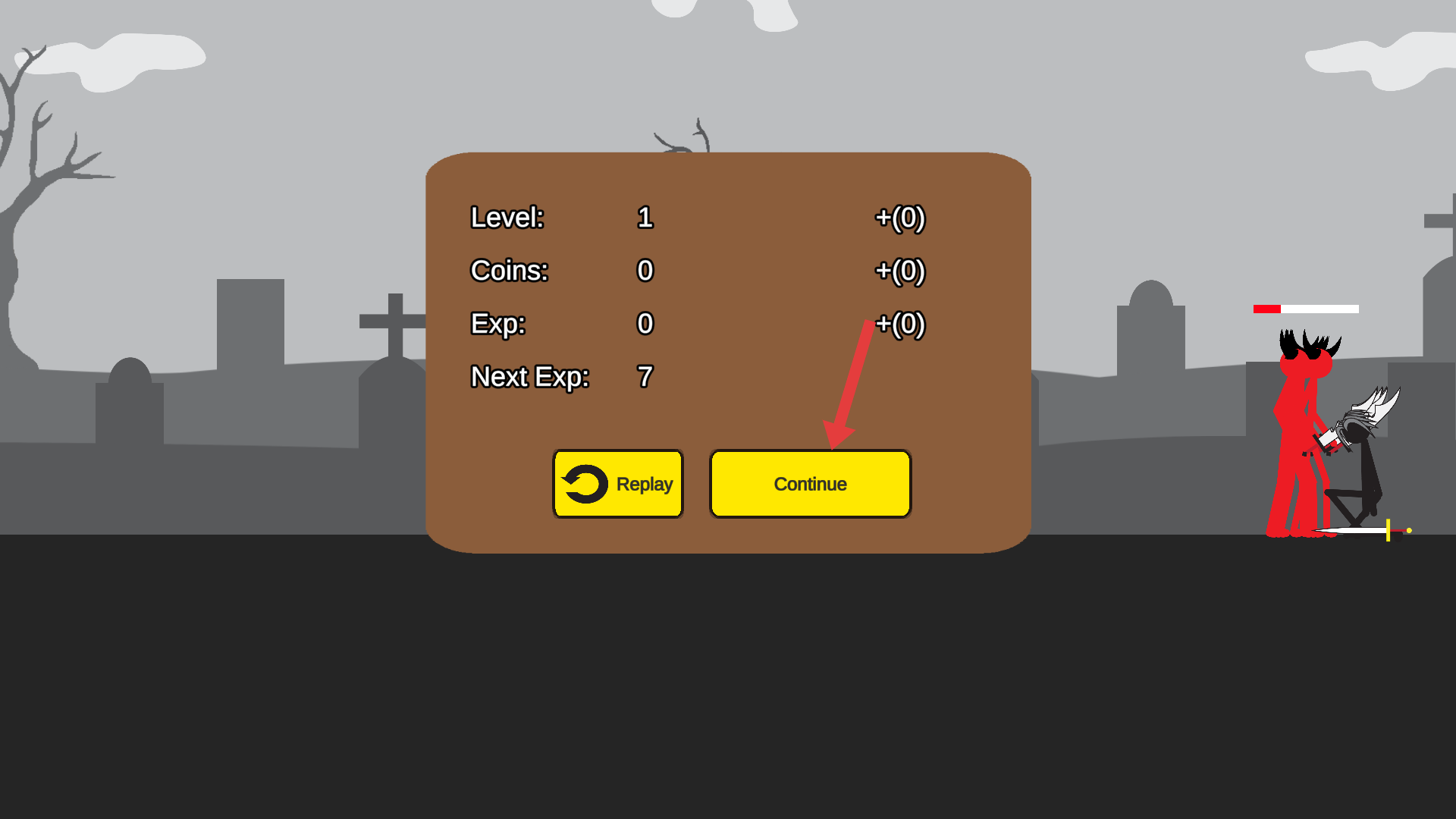 4、戰斗結束后會彈出結算界面,顯示你的等級、獲得的金幣、經驗值等信息,點擊Replay可以重新挑戰關卡,點擊Continue則返回主界面進行其他操作。
