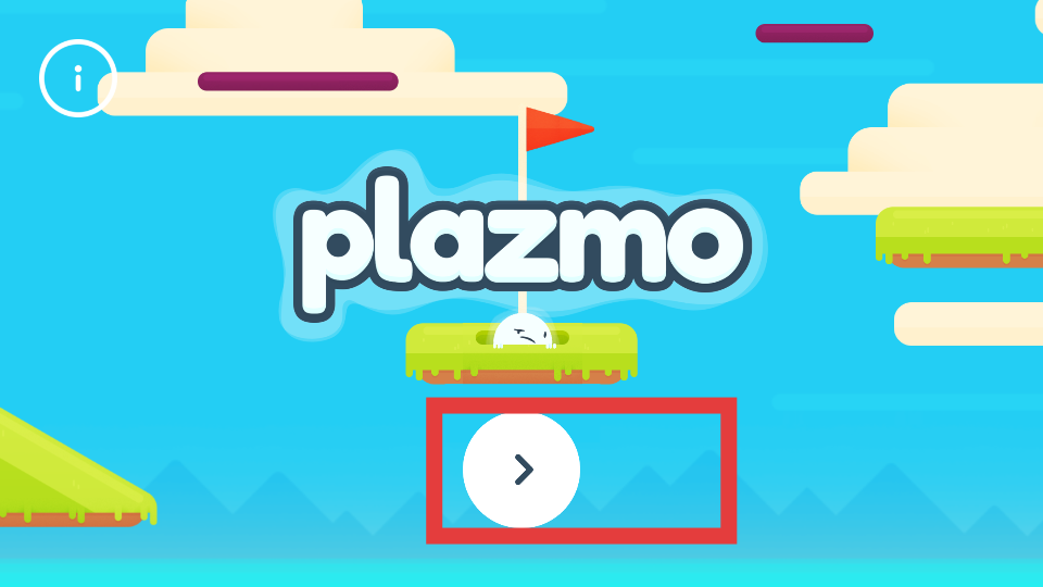 1、玩家下載游戲在游戲主界面點擊下方白色圓圈帶右箭頭的按鈕,進入空中高爾夫關卡選擇或直接開始游戲,開啟小球的冒險之旅。