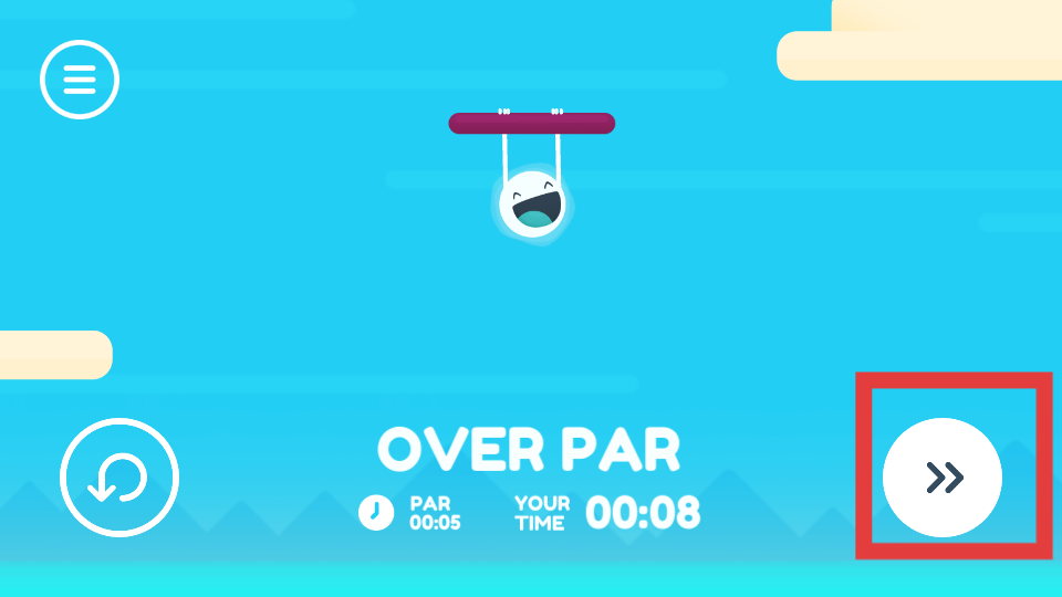 3、當小球完成關卡之后,玩家可點擊右側白色圓圈帶雙右箭頭的按鈕,可進入下一個關卡繼續挑戰。