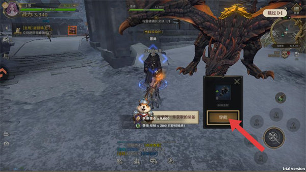 3、與NPC交互完成任務后,會獲得裝備,彈出裝備窗口時,點擊穿戴,可更換裝備,提升角色的戰斗力。