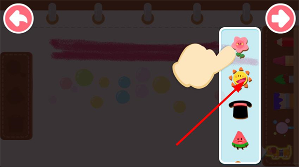 3、選擇喜歡的裝飾圖案,點擊對應的元素,將其添加到畫板的涂鴉區域,豐富畫面的裝飾效果。