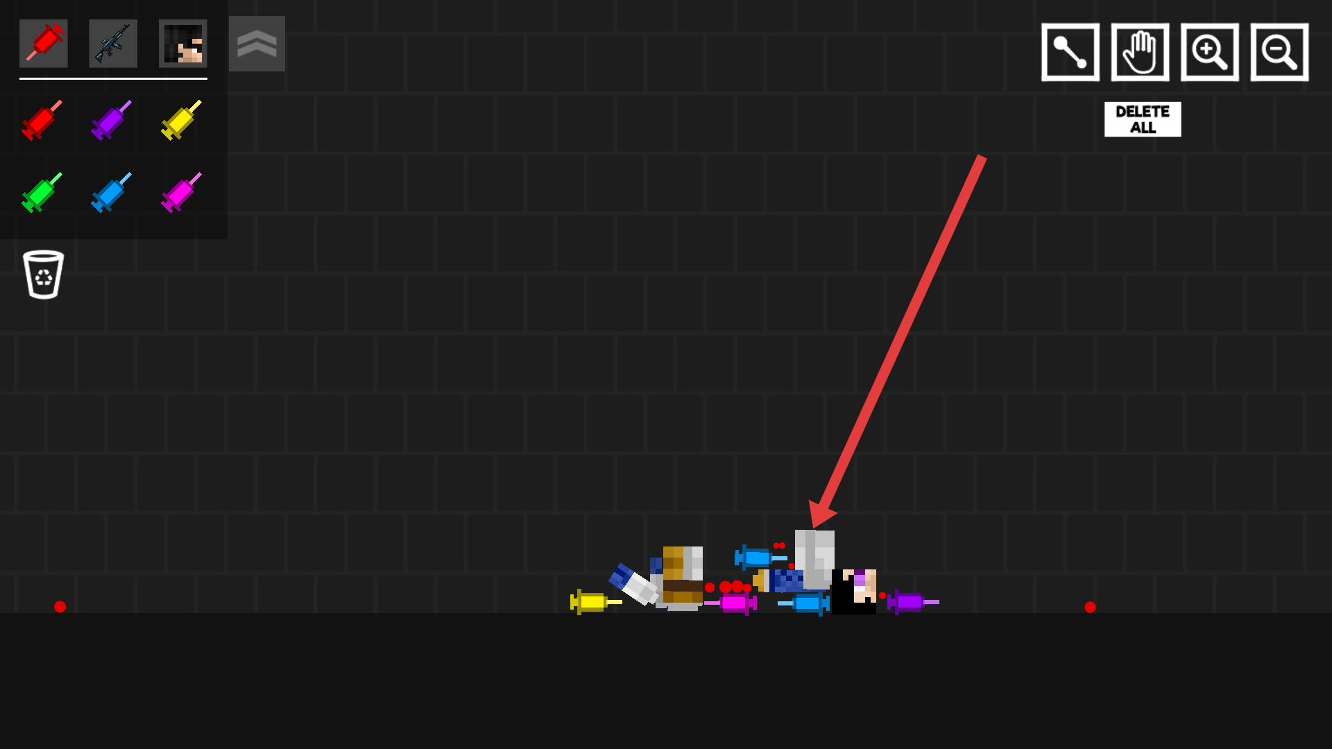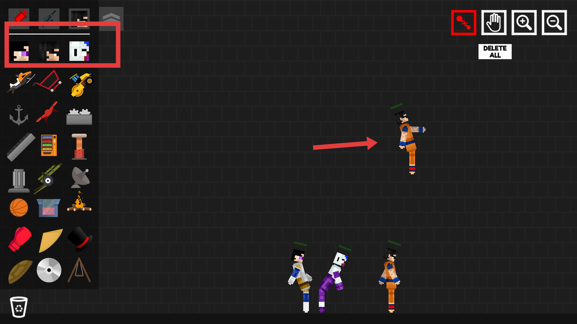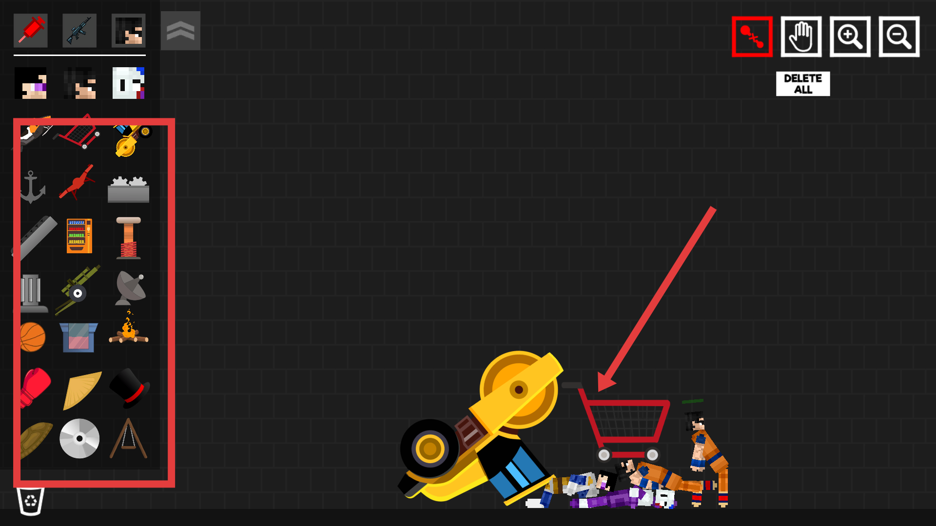 4、界面右上角設有DELETE ALL按鈕,點擊它可以快速刪除場景所有已放置的道具和角色,方便你重新開始創作,盡情發揮創意打造奇趣世界。