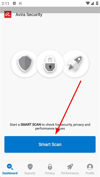 3、進入Dashboard板塊,可點擊SmartScan按鈕,啟動智能掃描,檢查設備的安全、隱私和性能問題,保障設備安全。