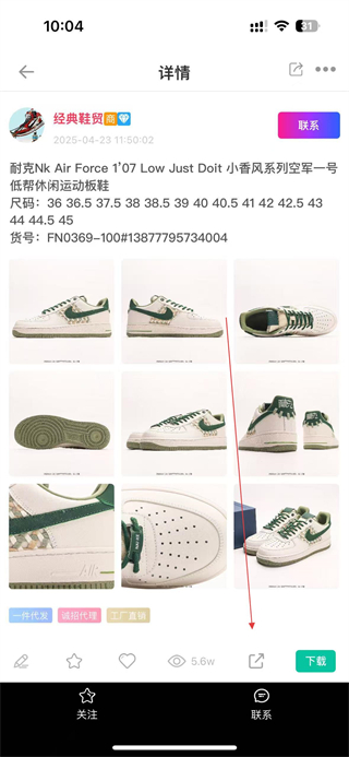 3、在商品詳情頁查看鞋款的尺碼、貨號及多組展示圖片,了解商品的詳細信息,確認是否符合需求。
